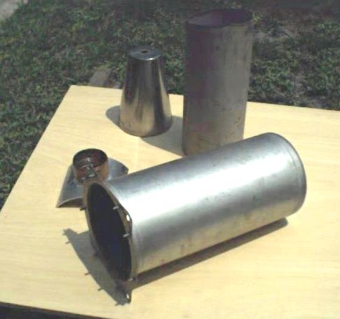 The primo piece I found was a flanged stainless steel can that was almost made to order for my application. I have no idea what it was originally, but it will make a great combustion chamber. It is 5.5 inches in diameter and 12 inches long. The next find was a piece of stainless steel tubing 4.5 inches in diameter. It is really heavy walled stuff. I would have liked to find some thinner walled tubing, but there wasn't any to be found. I grabbed it just in case but will keep my eyes open in the future for something thinner and easier to work with. I also found a stainless steel cone that would work as a reducer down to the diameter of the turbine inlet.
