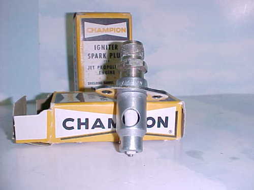 I am planning on fueling the new engine with either kerosine or diesel fuel. I strongly suspect that an ordinary spark plug won't be able to ignite the fuel reliably. I was working on alternative ideas when I noticed real live jet engine spark plugs for sale on eBay. I put in a bid on a pair and won! The best part is that they only cost $5.00! With shipping they still came in under $10! They are Champion FS-31 plugs originally intended for use in the F-86. I got a pair of new unused plugs in the original boxes. Although these are clearly 50s era spares that sat on a shelf somewhere until somebody decided to dump them, they seem to be in absolute mint condition.